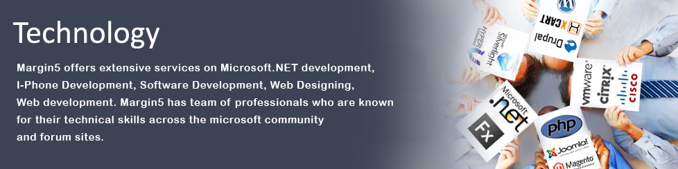 Margin5 Solutions Inc. offers extensive services on Microsoft.NET development, I-Phone Development, Software Development, Web Designing, Web development. Margin5 Solutions has team of professionals who are known for their technical skills across the microsoft community and forum sites.